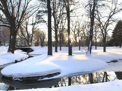 北海道大學離札幌車站不遠,走路十來分鐘應該走的到,冬天的北海道大學裡有滿滿的雪.映著穿越校園裡的小溪與樹木,相當有意境.大推~