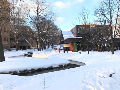 北海道大學離札幌車站不遠,走路十來分鐘應該走的到,冬天的北海道大學裡有滿滿的雪.映著穿越校園裡的小溪與樹木,相當有意境.大推~