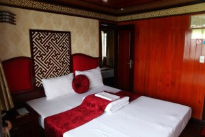 說到這家ROSA CRUISE算起來也是中規中矩,該有的都有,雖然船不像ALISA那麼新,但也還算的上舒適,餐點也可口,該去的景點也都有去,以兩天一夜含三餐加點心來說其實CP值很不錯了,但當過夜船下錨時,看到遠方緩緩開過來貌似很HIGH的 ALISA CRUISE停在我們旁邊的時候,心裡竟然出現一點酸酸的感覺,這台ALISA整個設備跟船體完全屌打我們這台ROSA,有種開著TOYOTA卻看到旁邊停著一台BMW的感覺,早知道就多花點錢訂下去.