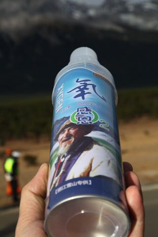 從維基百科可以得知玉龍雪山是雲南納西人的神山與居住地,主峰高達5,596公尺,而纜車拉上纜車站也達4,506公尺,相當高聳,所以參團時,導遊都會發氧氣瓶請大家先吸飽以減少高山症發作的機率,不過是不是馬上要吸完似乎也沒說個準,於是天真的我就只吸了一半便勇敢地拉上纜車去了.結果當然是悲劇一賞上山後,沒幾秒馬上出現頭昏沉,腳步無力等高山症症狀.