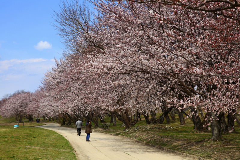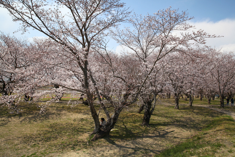 如果是在櫻花季來到伊勢,逛完內外宮後,可以前往離外宮兩三公里左右的宮川堤看櫻花,顧名思義這就是個堤防兩岸種櫻花的地方,在沒有櫻花的季節,這裡應該就只是個普通的河濱公園,但還好我們是櫻花季來,所以一定要來這裡賞花一下的~
