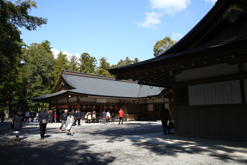 離開外宮後,驅車前往約三公里遠的內宮,不知是否是因為參訪時間的關係,內宮參拜的人比外宮多不少,這裡停車要收費,外圍很多空地都在做停車場生意,我們這次停過兩個地方,一個是內宮某處入口外的立體停車場,按時計費,停車費一小時要好幾百日幣,如果不趕時間的話可以停在比在外圍的私人按次計費的停車場,再慢慢走過來托福橫丁,這樣逛完內宮還可以沒壓力的吃個點心或午餐。