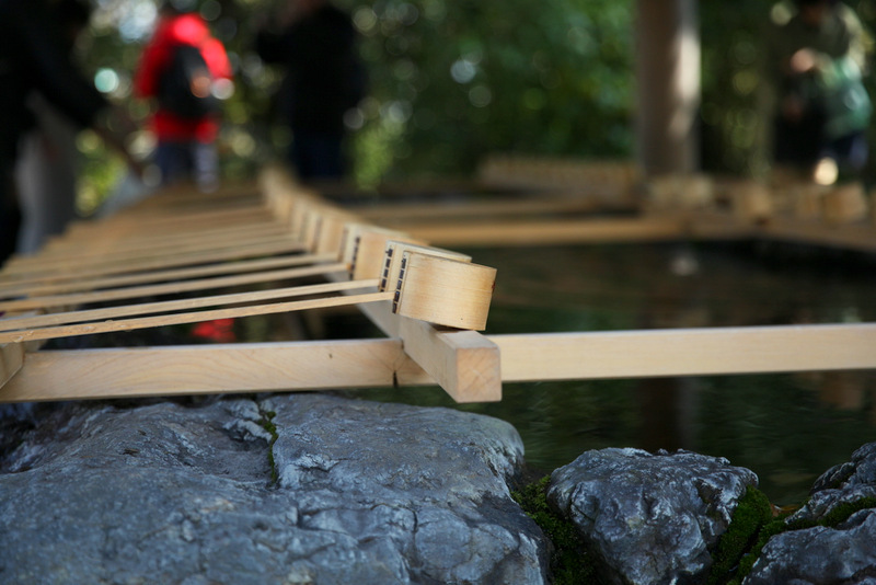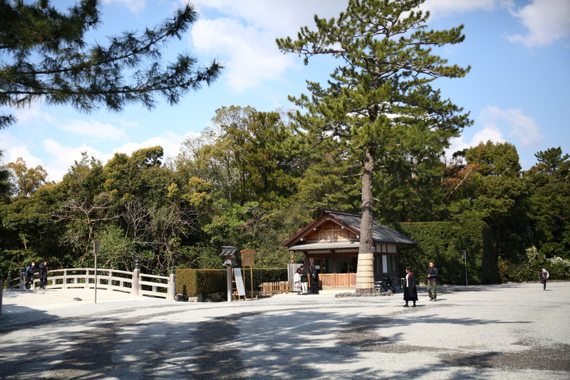 內宮是供奉天照大御神的皇大神宮, 從托福橫丁走進內宮的路上可以看到不少滿開的櫻花,園區內的植栽都有專人照顧,型態都非常的優美,沿著舖著級配的道路走進內宮,還會經過小橋與五十鈴川,基本上內宮的配置跟外宮有一點相似,但可能是因為需要踩著階梯上去的原因, 天照大御神的皇大神宮更有氣勢,尤其是祭典時更顯莊嚴,不過因為當天參拜的人太多,我就沒拍那邊的照片了,有興趣可以參見官網。