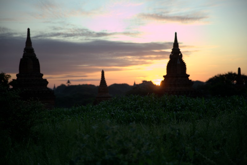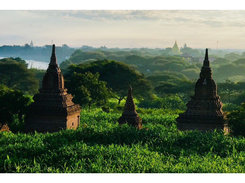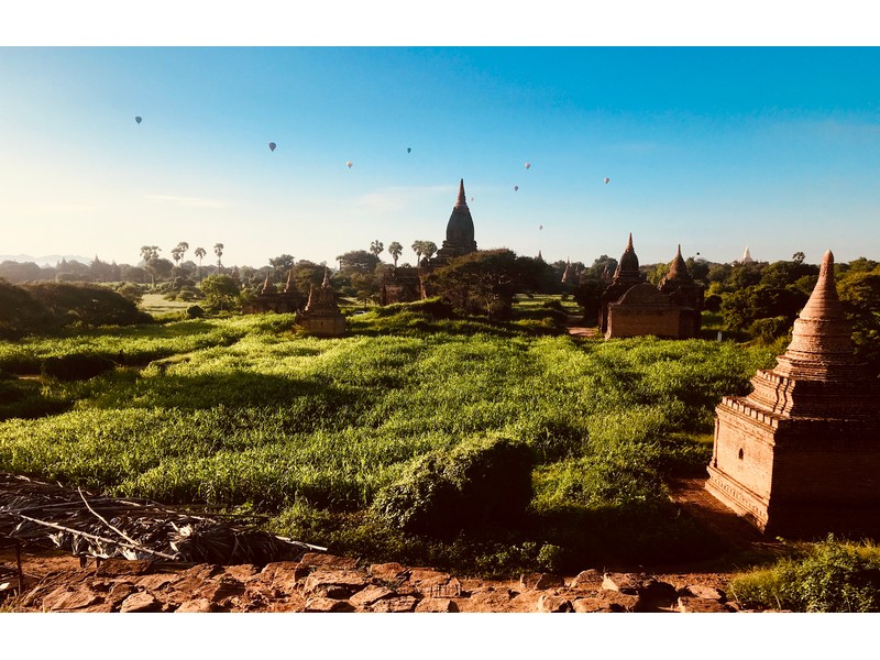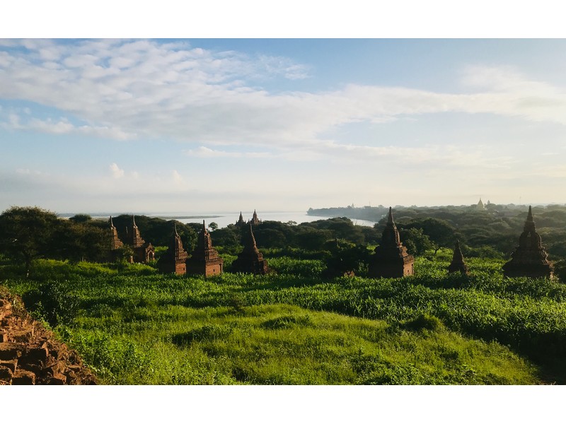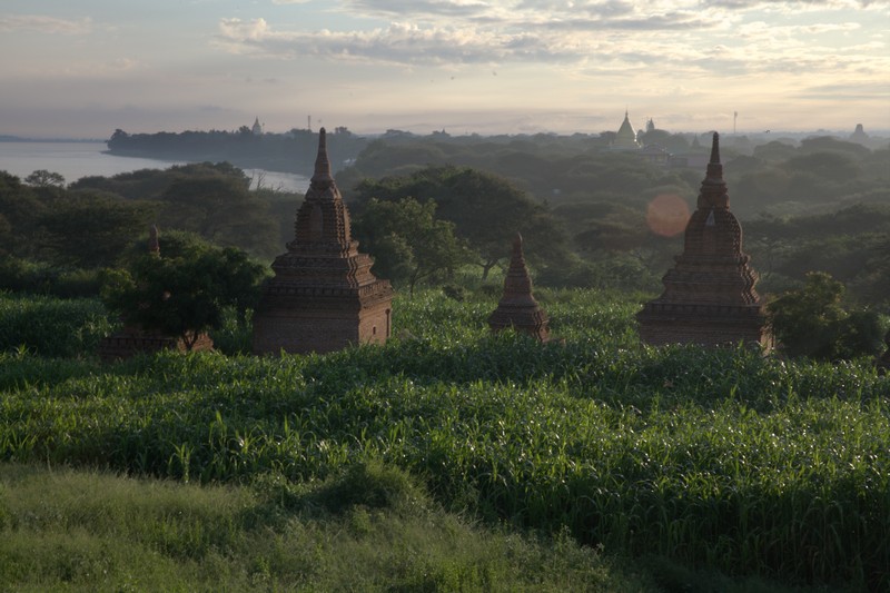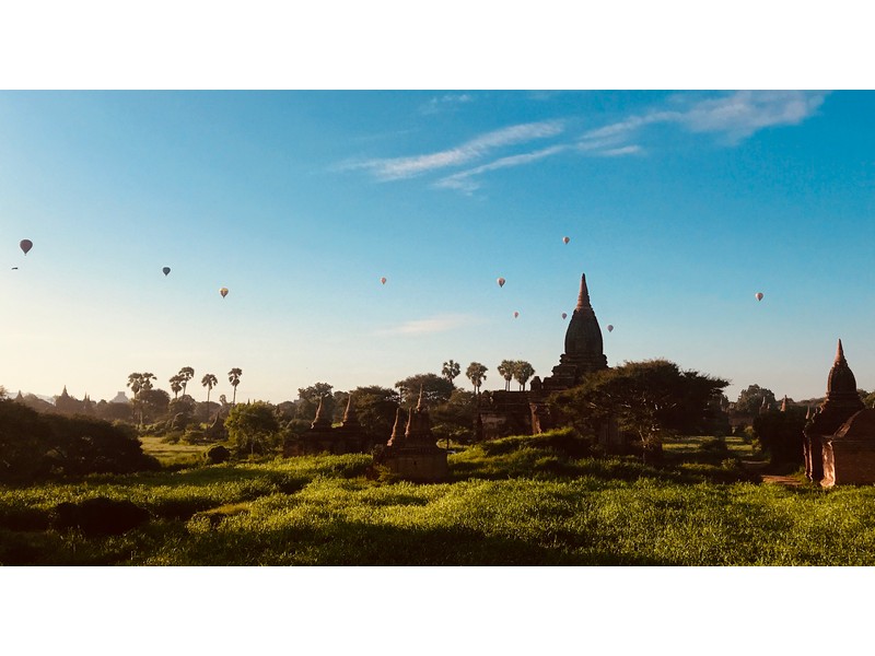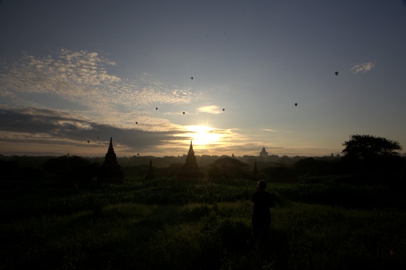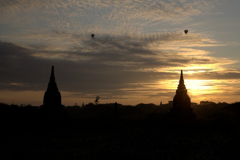 在這幾個逐日地點裡面,Yin-ma-na-hpaya是我最喜歡的點,人相對沒那麼多,且周圍有很多佛塔包圍,往西看去就是伊洛瓦底江,日出時隨著太陽上升,佛塔開始被茵蘊之氣壟罩,接著熱氣球會在前方一個一個升空並往江邊飄移,非常適合拍大範圍的全景照,就算不拍照,靜靜地欣賞佛塔與日出及熱氣球也是個美好的早晨!