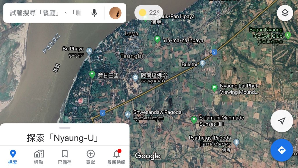 現在的蒲甘佛塔幾乎都已經不能爬了,因此如果不打算付費去專為看日出日落而建的瞭望塔的話,就要找相對較高的地方來看,這幾天逛下來,有幾個點可以提供大家參考,用Google地圖就能定位到並且導航.