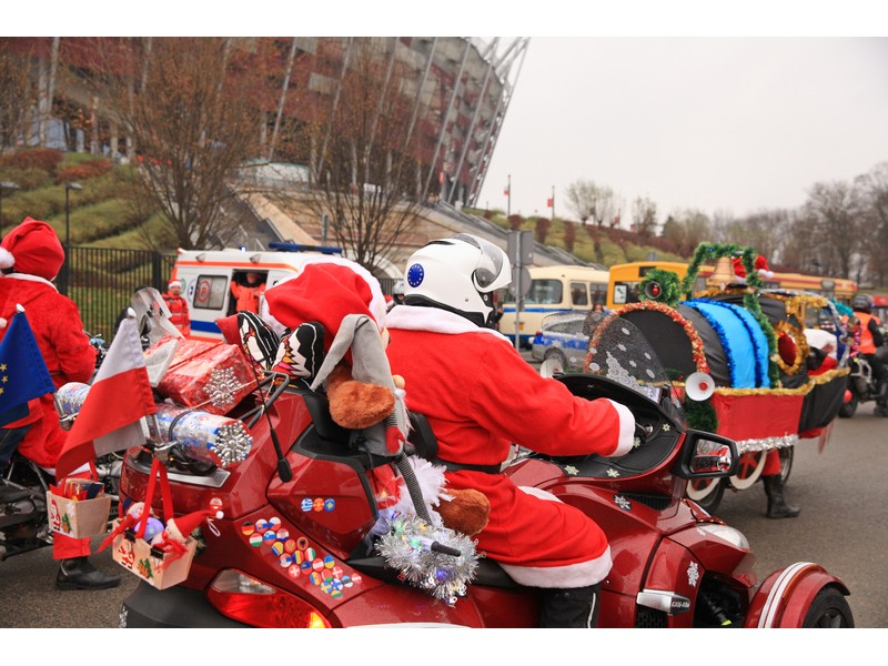 我們到華沙的時候,本來主要是想逛逛聖誕市集,不過到那邊的時候搭著TRAM到處逛時意外在外圍的體育館發現,正在舉辦聖誕老公公COSPLAY大會,這個活動由一大群騎著重機的車友裝扮成聖誕老公公的模樣,搭配車子的裝飾,一起聚集遊街,非常有趣的活動。