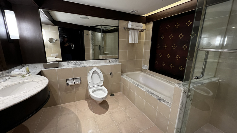 本來覺得升到小型套房好像很不錯,但可能是因為晚上,整個燈光很幽暗,第一時間感覺不是特別好,打掃的部分是掃得滿乾淨的,還有送迎賓點心,房間也不算小,必須說如果我是白天入住的話感受應該會好很多,至於房間整體來說真的是很有年代感,天花板高度也不是很高.