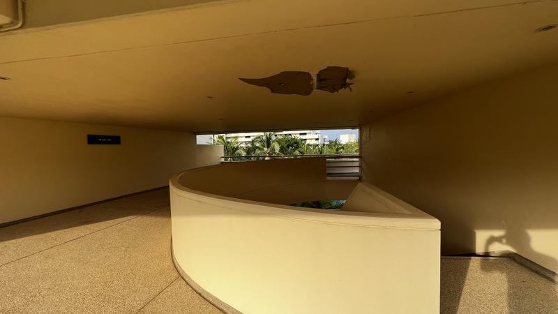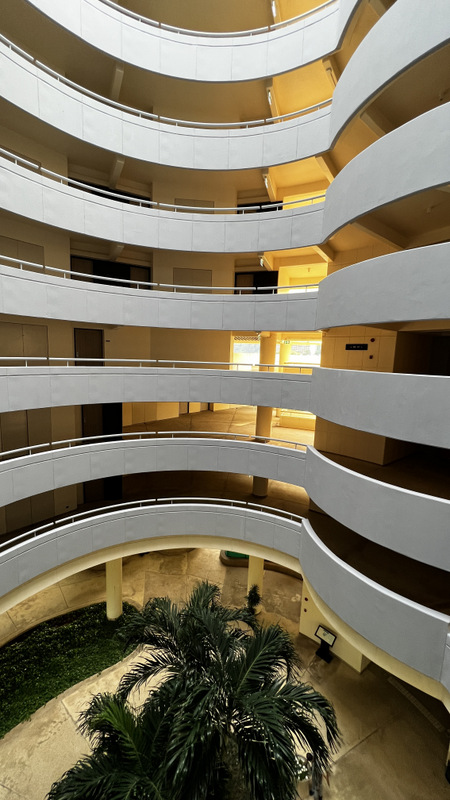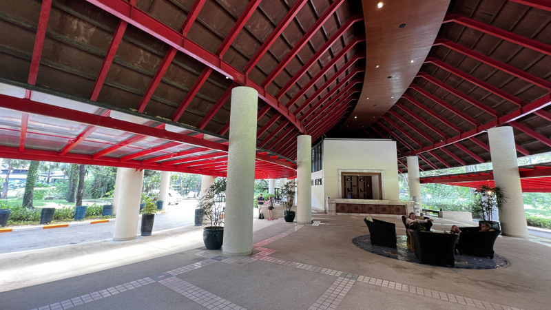因為這次希爾頓鑽卡挑戰成功,正好可以進酒廊,這間渡假村有很多棟,這次的房間正好就是在酒廊這棟,這個建築物一看就覺得不是現在這些年的建築物,年代感頗強.